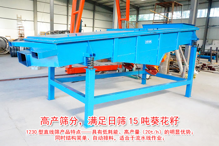 經(jīng)常有用戶咨詢我們小編,說想要購買每天可以篩分15噸葵花振動篩,但是不知道用哪種篩分機(jī)?價格又是多少錢?下面大漢小編為大家具體介紹一款可以滿足15噸葵花籽日篩的——1230型直線篩