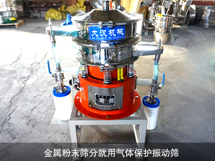 氣體保護振動篩是大漢機械研發(fā)的新型振動篩一般采用不銹鋼材質(zhì)、氣體保護軟管、防靜電裝置等制作而成,它是我們大漢的產(chǎn)品。