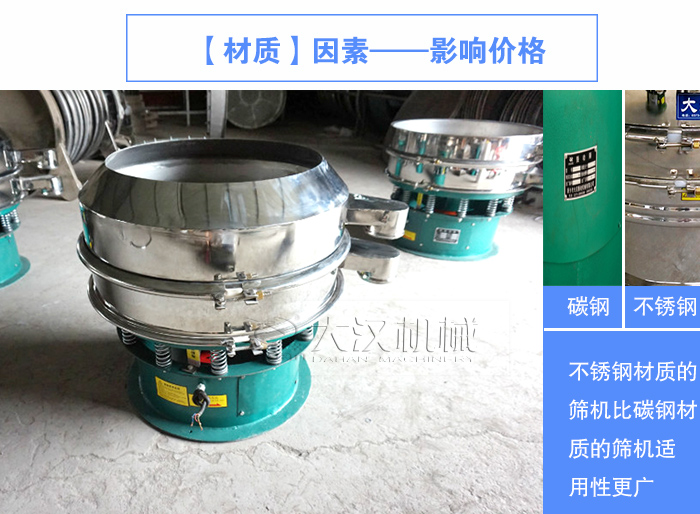 加緣式振動篩是在普通振動篩基礎上加強包邊,增大進料口直徑,為特殊篩分物料而設計的,所以相比普通振動篩價格會稍微貴一點,具體如下: