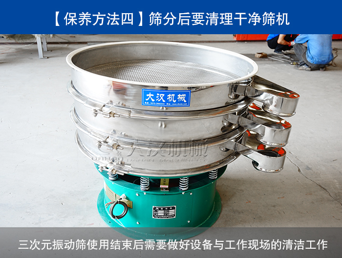 三次元振動篩使用結束后需要做好設備與工作現(xiàn)場的清潔工作
