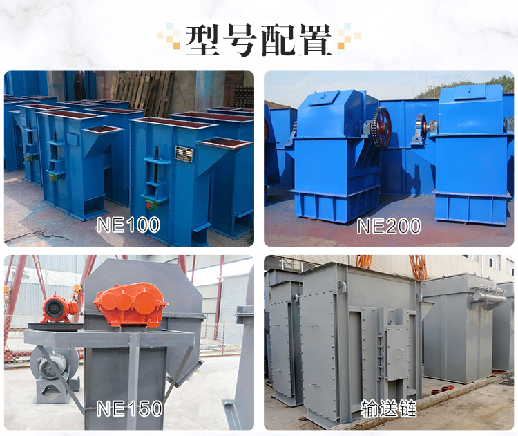 散裝物料板鏈斗式提升機(jī)擁有大小不同的11種型號以及不同配置,型號有NE15、NE30、NE50 、NE100、NE150、NE200、NE300、NE400、NE500、NE600、NE800等,不同大小型號的提升機(jī)配置(料斗、鏈條、振動電機(jī))選用的都不同所以價格也會有所不同,提升產(chǎn)量越大所選擇的料斗規(guī)格與電機(jī)功率也就越大。