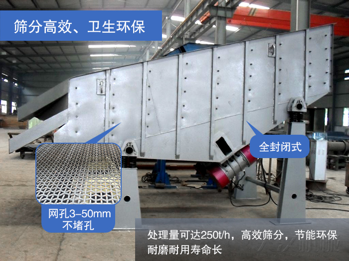 YK系列的振動篩的網(wǎng)孔一般在3-50mm之間,處理量可達(dá)250t/h,保證高效篩分不堵孔;全封閉式解夠避免物料出現(xiàn)溢散現(xiàn)象,密封性好。同時YK系列的振動篩采用的高強(qiáng)度的鋼材制成,耐磨耐用壽命長。