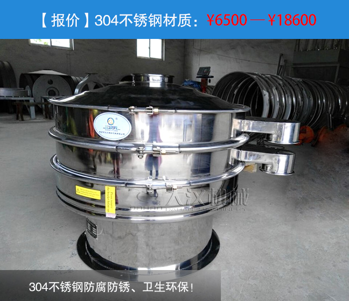 304不銹鋼防腐防銹、衛(wèi)生!——304不銹鋼材質(zhì)的振動篩是采用304不銹鋼材質(zhì)(兩種結(jié)構(gòu)規(guī)格:一、整機(jī)均采用不銹鋼制成;二、物料接觸不分為不銹鋼材質(zhì),底座為碳鋼材質(zhì)),它是食品、醫(yī)藥專用材質(zhì),雖然我們要篩分的是化學(xué)物料錫粉,但是對于衛(wèi)生環(huán)境要求較高的企業(yè)這也是不錯的選擇。