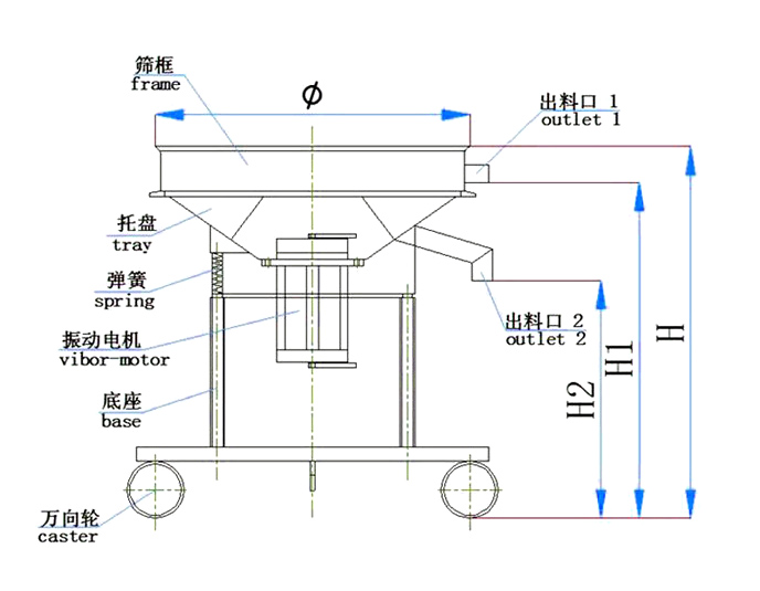 篩網(wǎng)直徑:600mm、800mm、1000mm、1200mm
