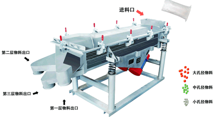 重型直線篩利用振動(dòng)電機(jī)激振作為振動(dòng)源,使物料在篩網(wǎng)上被拋起,同時(shí)向前作直線運(yùn)動(dòng),物料從給料機(jī)均勻地進(jìn)入篩分機(jī)的進(jìn)料口,通過(guò)多層篩網(wǎng)產(chǎn)生數(shù)種規(guī)格的篩上物、篩下物、分別從各自的出口排出。具有耗能低、產(chǎn)量高、結(jié)構(gòu)簡(jiǎn)單、易維修、全封閉結(jié)構(gòu),無(wú)粉塵溢散,自動(dòng)排料,更適合于流水線作業(yè)。