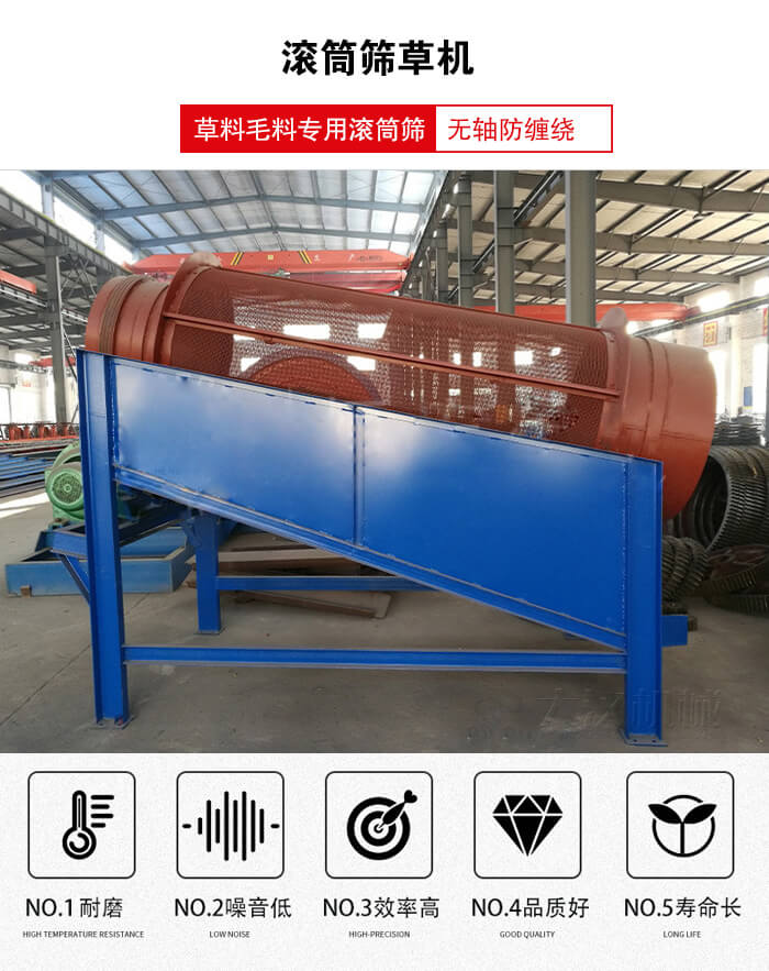 產(chǎn)品簡介:滾筒篩草機是根據(jù)草料毛料專用滾筒篩,有大型和小型兩種。繼承了單層滾動篩的良好篩分優(yōu)勢,內(nèi)層棒條篩網(wǎng),外層金屬細密編織網(wǎng),解決了大塊物料對滾筒篩網(wǎng)的壓力。廣泛應用于篩草行業(yè)的喜愛。