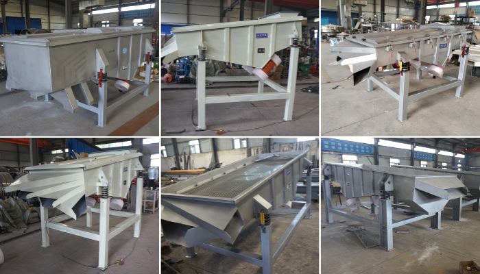 碳鋼單層直線振動篩 雙層無防塵蓋加裝支撐架的直線振動篩 三層加裝防塵蓋支撐架加裝固定鐵塊的直線振動篩